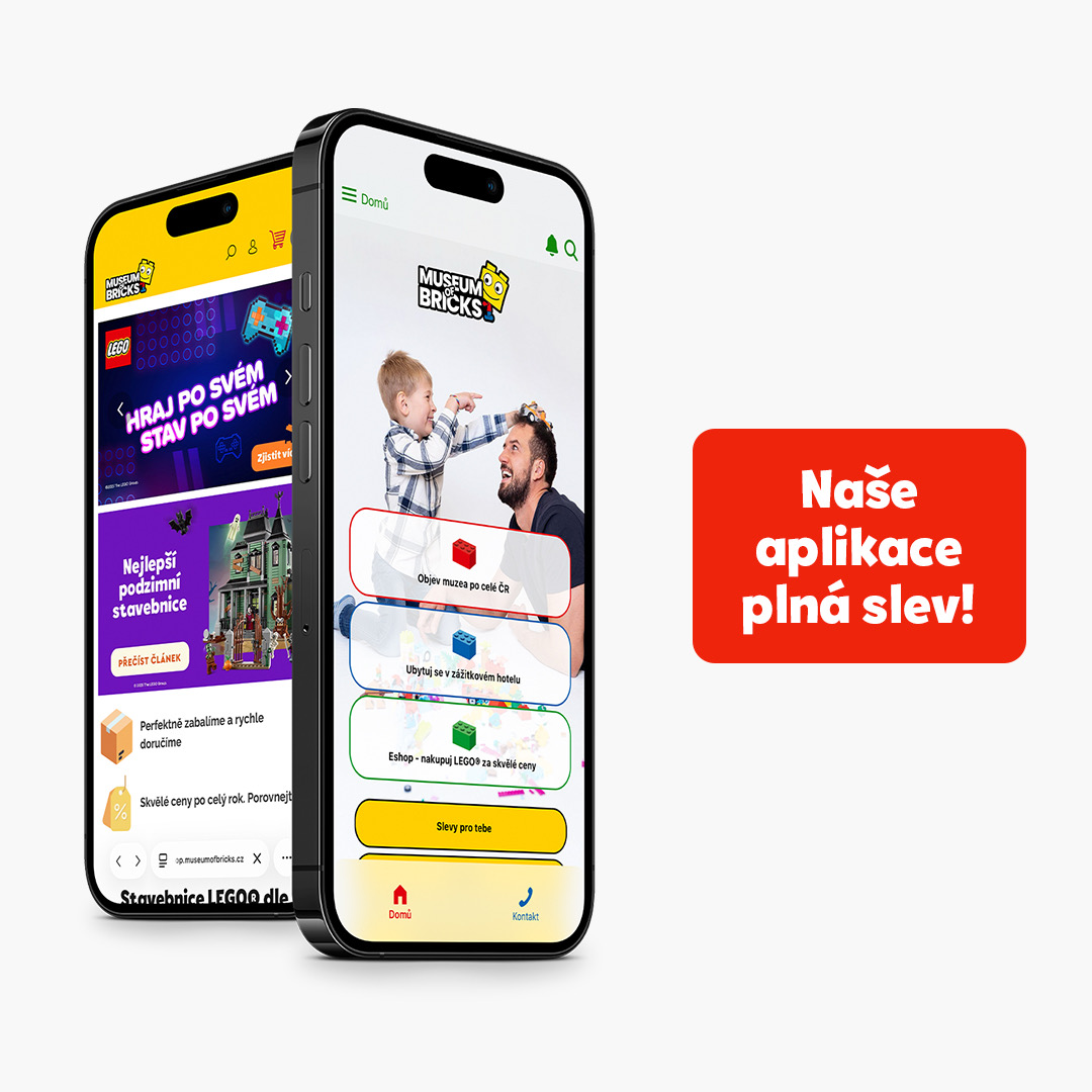 - Slevy na stavebnice LEGO® v kamenných obchodech Museum of Bricks a e-shopu: V aplikaci objevíte akční nabídky, které jinde nenajdete. Ideální pro doplnění vaší sbírky nebo nákupy dárků na poslední chvíli.